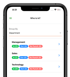 Management and supervisors can see the employees In/Out status in realtime.